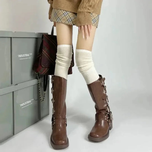 1/4 Pairs Women Solid Color Knee High Socks High Elasticity Breathable Comfortable Suitable All Seasons Casual Long Boots Socks