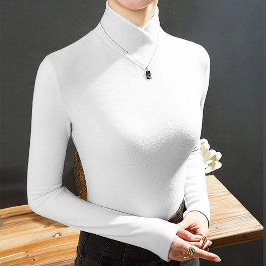 2025 Autumn Winter T Shirt Fleece Fabric Turtleneck Bottoming Tee Shirt Korean Simple Casual Tops Long Sleeve T-shirt Keep Warm