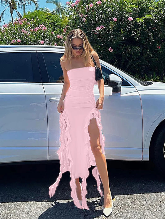 2025 Summer Women Strapless Backless Flower Printed Long Dress Women Sleeveless Off Shoulder Vestidos Plus Size S-3XL Streetwear