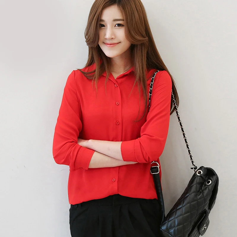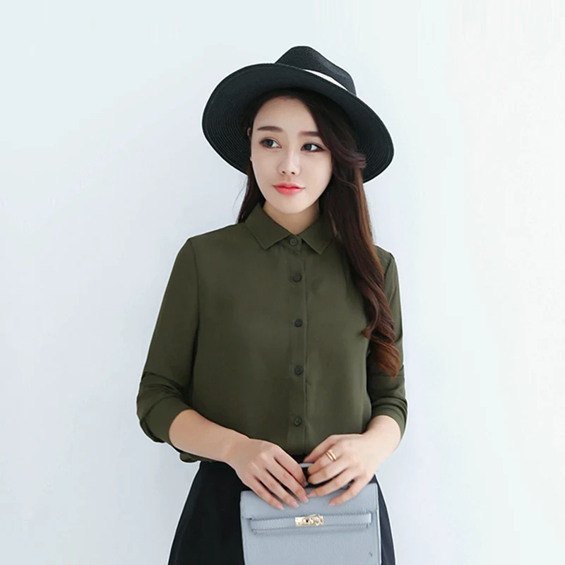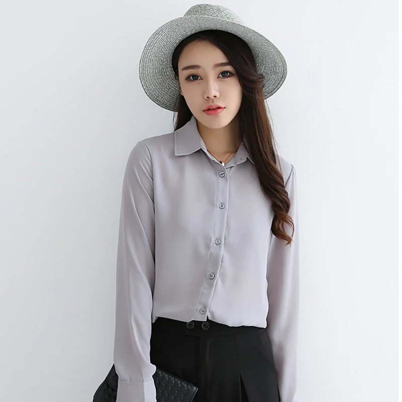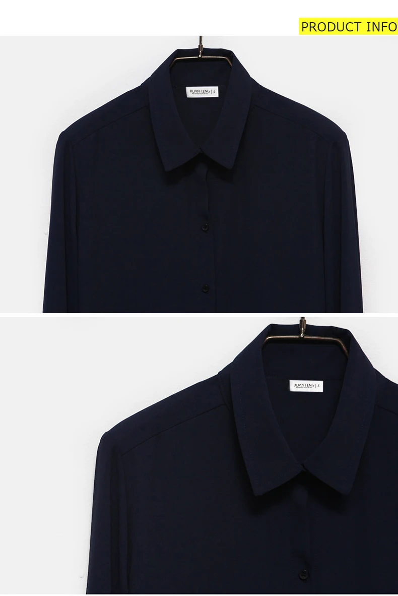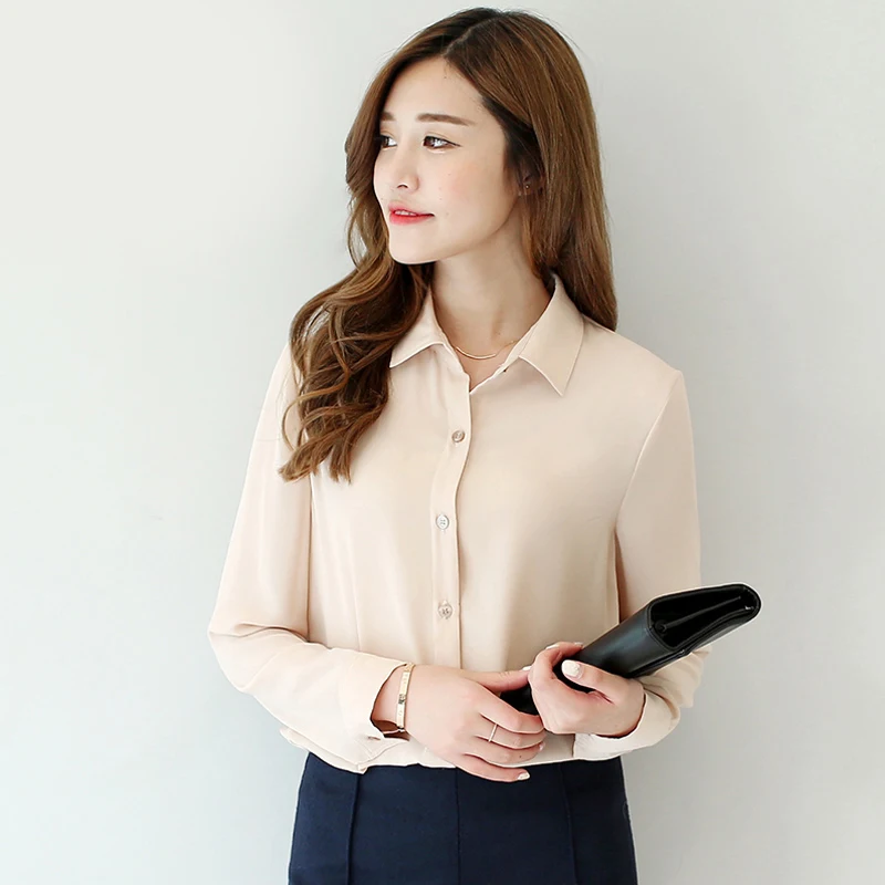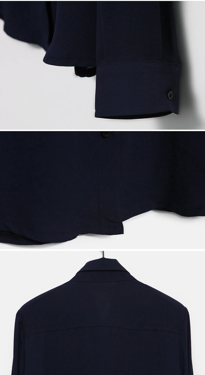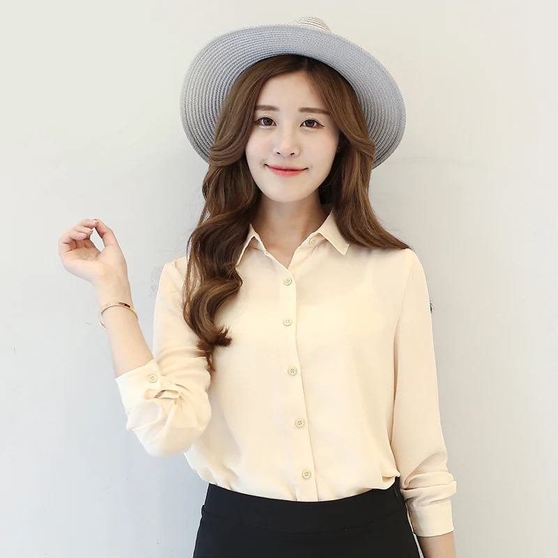 2025 Autumn Women's Solid Color Lapel Long Sleeve Chiffon Shirts Simple Casual Loose Woman Blouse and Tops Office Lady Clothes
